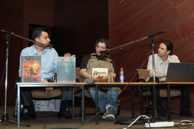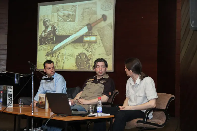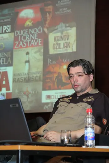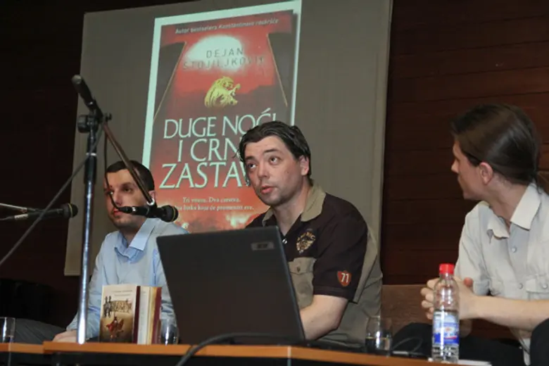 Publika je mogla da čuje i koje su bile ideje vodilje u građenju likova srpskih vitezova, kao i pri oživljavanju sudara civilizicijskih korpusa u srednjem veku. Tokom tribine pokrenuto je i pitanje očuvanja čovečnosti u dehumanizujućim okolnostima uz navođenje primera iz romana „Konstantinovo raskršće“ i „Kainov ožiljak“.