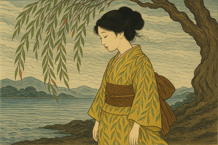 film u holivudskom stilu, kimono opisan kao pejzaž: „Njen kimono je bio žute boje, sa granama vrbe koje su imale ljupko zeleno i narandžasto lišće, sašiven od tanane svile, prefinjene poput paukove mreže. Pojas, takođe od paperjastog, mekog materijala, ipak nešto čvršći, bio je smeđe zemljane boje, protkan zlatnim nitima.“ Devojčica, koju pripremaju za gejšu, stoji u prljavom hodniku zadivljena kimonom starije, čiji je svaki detalj odvlačio pažnju sa surovog lica koje je odudaralo od odeće. Obuka da se dosegne očekivano bila je teška i podrazumevala je mnogo odricanja ali je budućnost obećavala znatne povlastice. Sestrinstvo u kimonima često nije blagonaklono, ponaša se nemilosrdno i okrutno prema prispelim novim licima. Divljenje se kod tek pristigle devojčice smenjivalo sa strahom i prezirom. „Činilo mi se kao da milujem telo mačke da bih na njemu odjednom ugledala glavu buldoga.“
