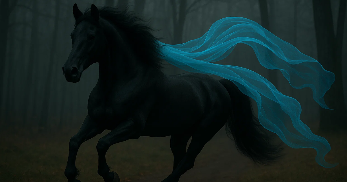 U crnom kostimu sa dugom suknjom, kao salivena sa sedlom, Ana Marija jaše visokog vranca. Tamna figura, nalik modernoj kentaurki, nema nameru da siđe sa postolja i prepusti se Defoseu, koji joj se udvara očekujući dostojnu nagradu. Ljubavna predigra je u približavanju i udaljavanju njihovih konja, kad mladić uobražava da izdaleka vidi njen šešir