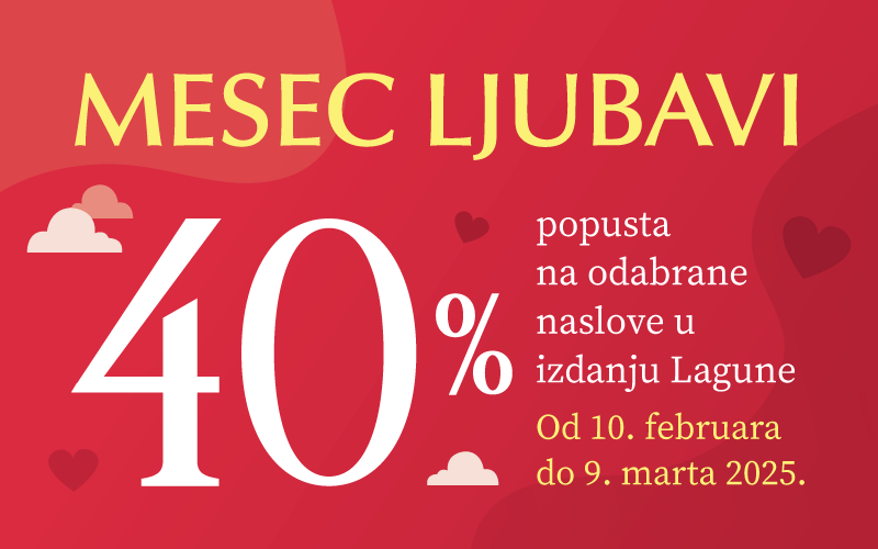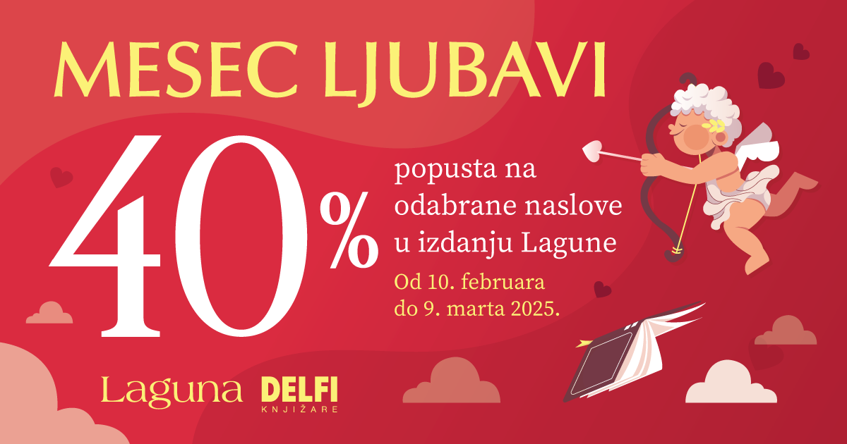 Od 10. februara do 9. marta 2025. u svim Delfi knjižarama i na sajtovima laguna.rs i delfi.rs važi popust od čak 40% na 80 izuzetnih naslova sa ljubavnom tematikom.