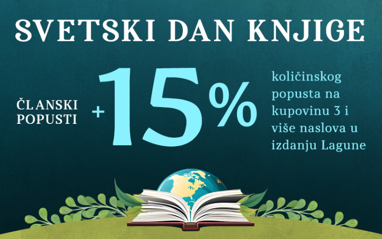 Za sve ljubitelje pisane reči od 21. do 27. aprila 2025. godine važiće količinski popust od 15% na kupovinu 3 i više naslova u izdanju Lagune, na odabrane domaće izdavače i knjige na engleskom jeziku u svim Delfi knjižarama i na sajtu laguna.rs.