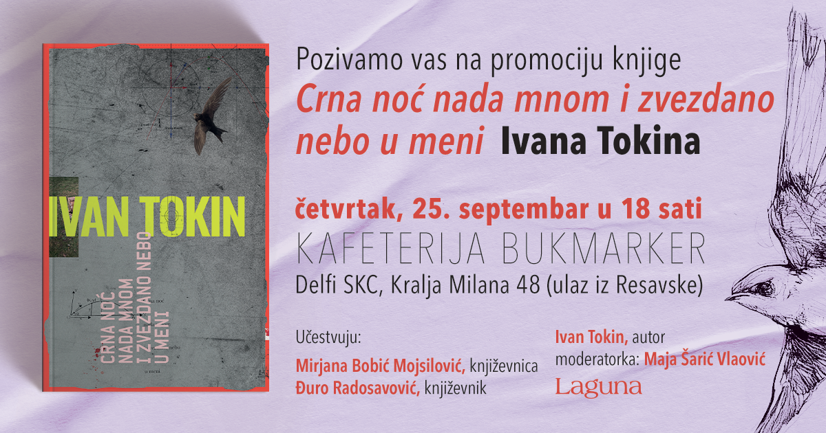 Laguna - Bukmarker - Predstavljanje knjige „Crna noć nada mnom i zvezdano nebo u meni“ Ivana Tokina 25. septembra u SKC-u - Knjige o kojima se priča