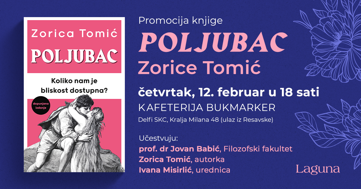 Laguna - Bukmarker - Promocija knjige „Poljubac“ Zorice Tomić 12. februara u knjižari Delfi SKC - Knjige o kojima se priča