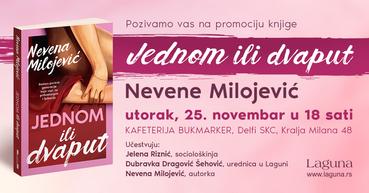 Laguna - Bukmarker - Promocija romana prvenca Nevene Milojević „Jednom ili dvaput“ 25. novembra u knjižari Delfi SKC - Knjige o kojima se priča