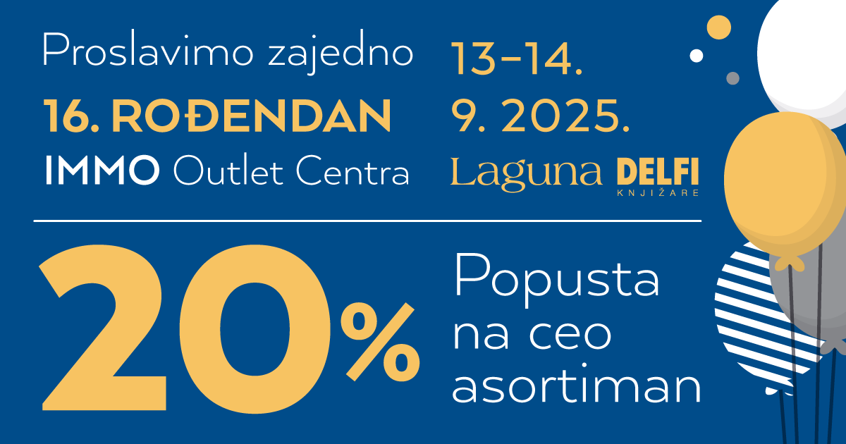 Povodom 16. rođendana IMMO Outlet centra, predstojećeg vikenda očekuje vas lepo iznenađenje u Delfi knjižari i Laguninom klubu čitalaca u ovom tržnom centru!