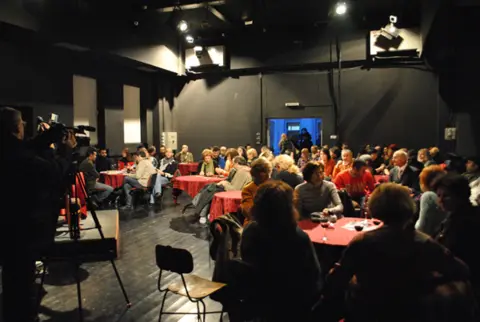 Druženje i promocija su se nastavili u Novosadskom pozorištu u izuzetno prijatnoj atmosferi koju su stvorili glumci pozorišta i Dragan Velikić. Promociju je vodila novinarka novosadske televizije Smiljka Seljin.