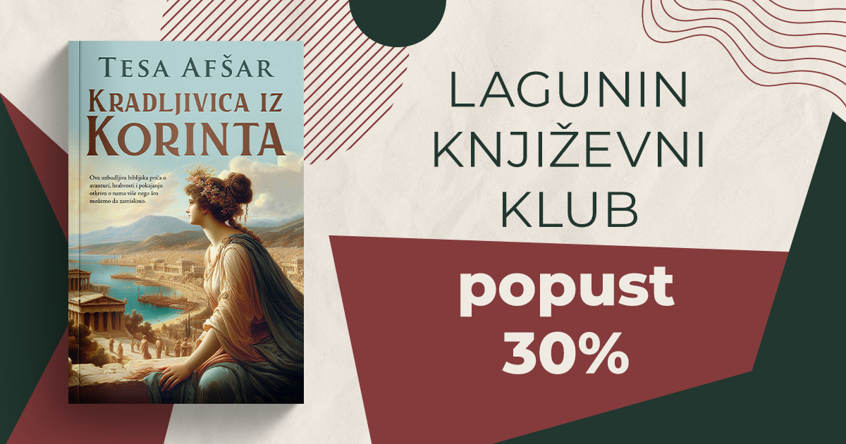Roman „Kradljivica iz Korinta“ na popustu je 30% do 4. jula 2025. u svim Laguninim klubovima čitalaca, Delfi knjižarama i na sajtu laguna.rs.