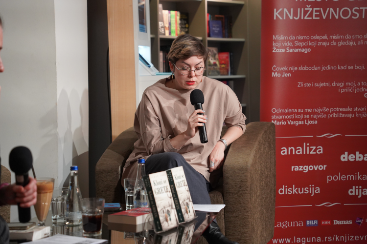 Kloni se Grete: Jedna nemoguća ljubav“ bio je tema 121. tribine Laguninog književnog kluba u četvrtak 3. aprila u kafeteriji Bukmarker knjižare Delfi SKC.