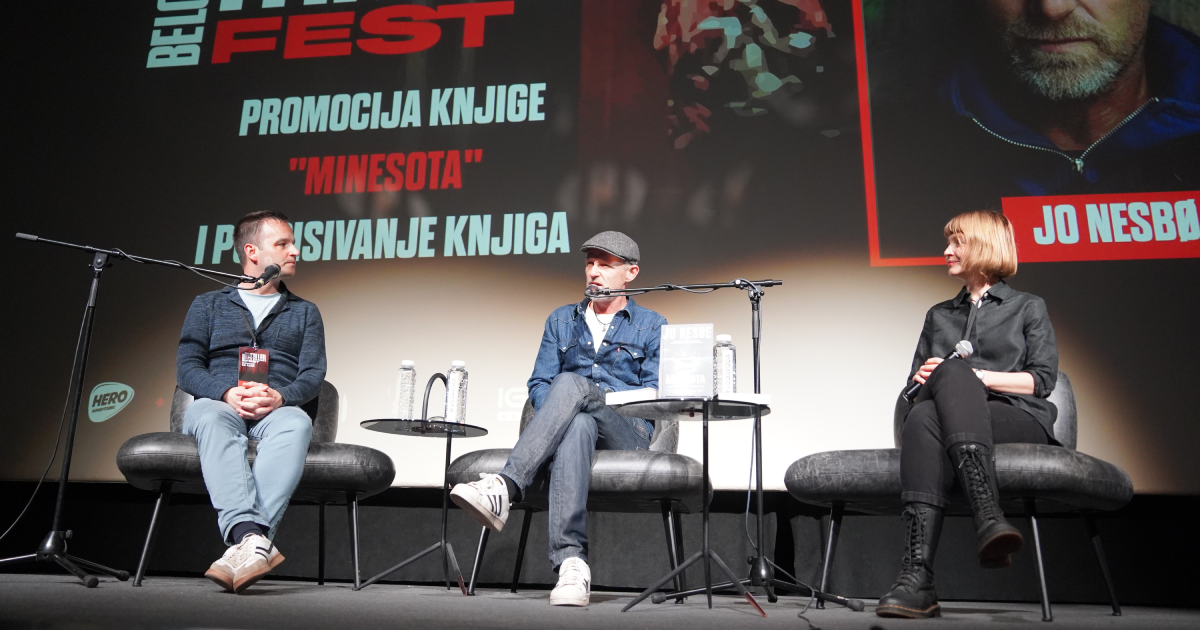 Autor je, u razgovoru sa prevoditeljkom njegovih dela Jelenom Lomom i prevodiocem „Minesote“ Igorom Soluncem, podelio priče o stvaranju svojih romana, likovima, društvu, Norveškoj i Americi na čelu sa Donaldom Trampom, očaravši prisutne svojom neposrednošću i iskrenošću.