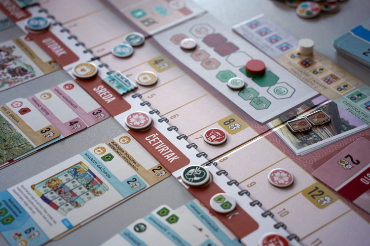 drafting igara, vaše mogućnosti ovde su prilično ograničene, jer veći deo partije možete da odaberete samo jednu od dve karte – ali u tome i jeste izazov. Drugi izazov je korišćenje karata za voz. Špil karata koji predstavlja različite aktivnosti u Japanu podeljen je između špila Tokija i Kjota, pa svaki put kada radite akciju koja zahteva da putujete u drugi region, morate da kupite kartu za voz. Prva karta je besplatna, ali će vam sve naredne doneti dva negativna poena, tako da morate pažljivo planirati.