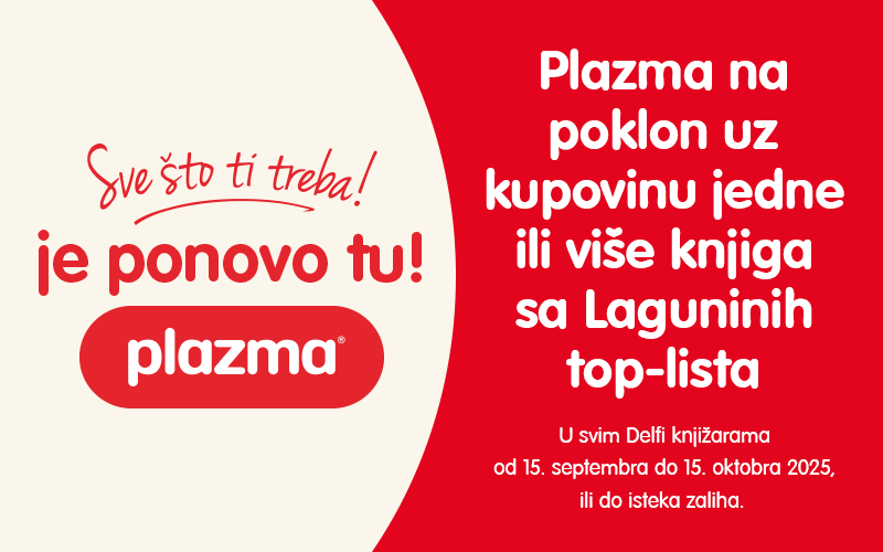 Od 15. septembra 2025. u svim Delfi knjižarama, uz kupovinu jedne ili više knjiga sa Lagunine top-liste beletristike, publicistike ili knjiga za decu, na poklon dobijate Plazmu, omiljenu generacijama.