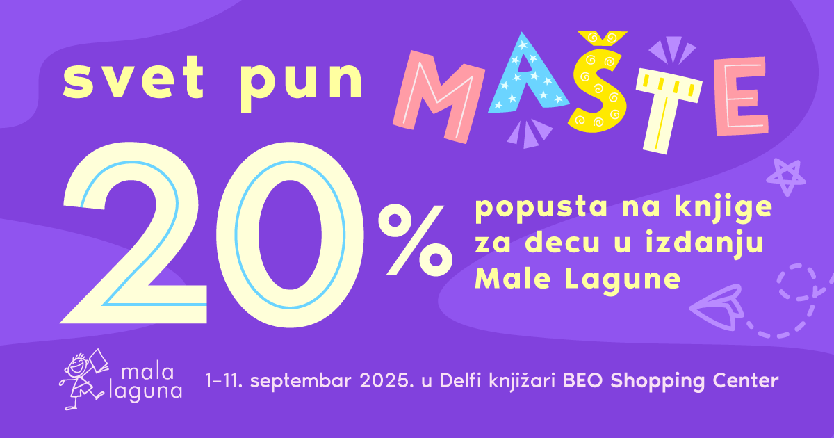 Nova školska godina počinje, a s njom i nova prilika da se mališani druže sa knjigama koje podstiču maštu, radoznalost i smeh! Od 1. do 11. septembra 2025. u Delfi knjižari u BEO Shopping Centru sva izdanja za decu Male Lagune čekaju vas uz 20% popusta.