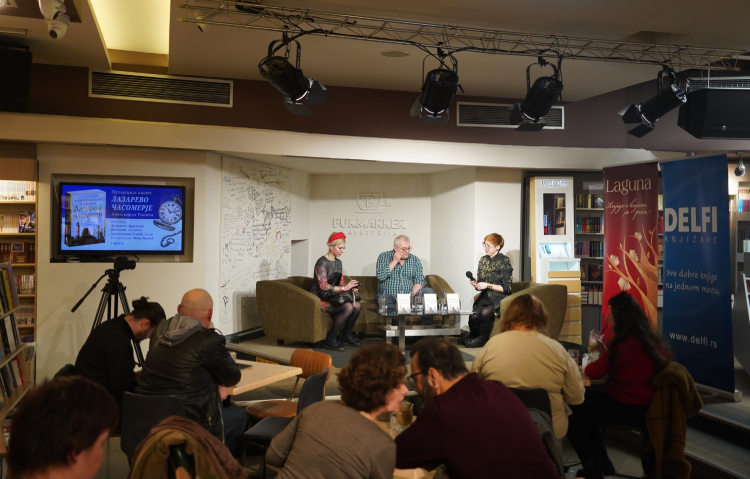 Promocija knjige „Lazarevo časomerje Aleksandra Tešića održana je u utorak 24. februara u kafeteriji Bukmarker knjižare Delfi SKC.