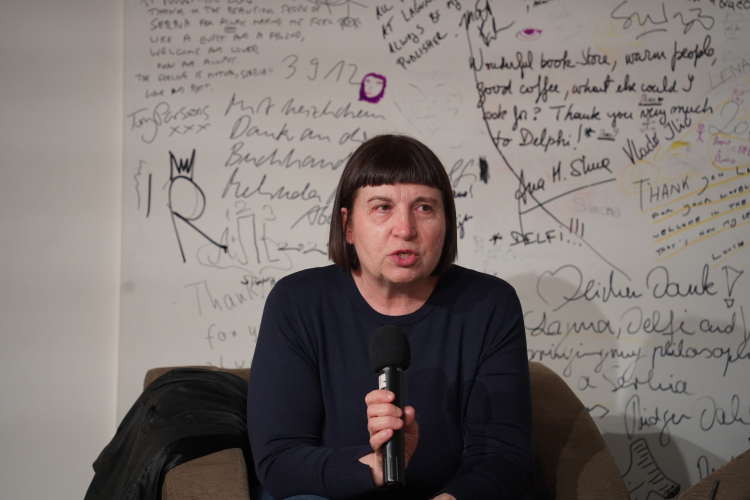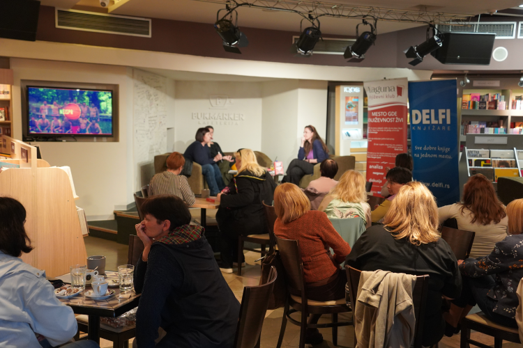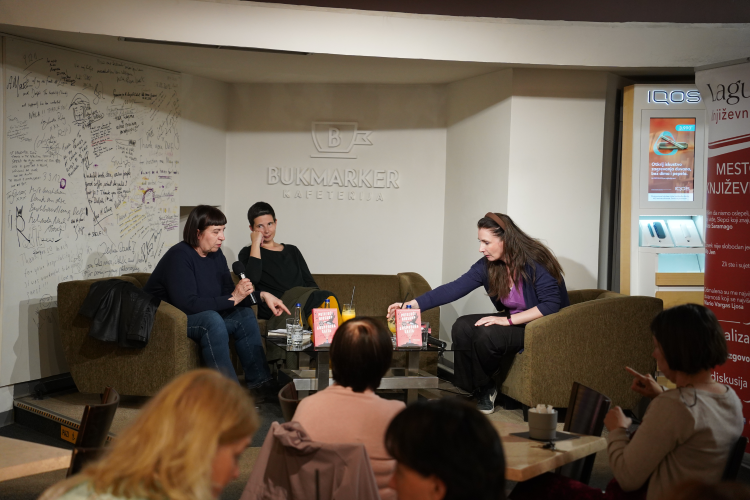 O ovom izuzetnom romanu govorile su viši lektor na Katedri za skandinavistiku Filološkog fakulteta Mirna Stevanović i novinarka i književna kritičarka Dragana Kovačević.