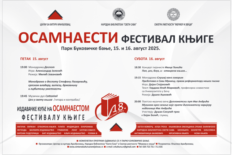 XVIII Festival knjige u Aranđelovcu 15. i 16. avgusta