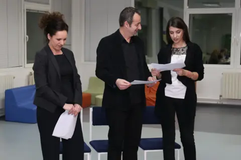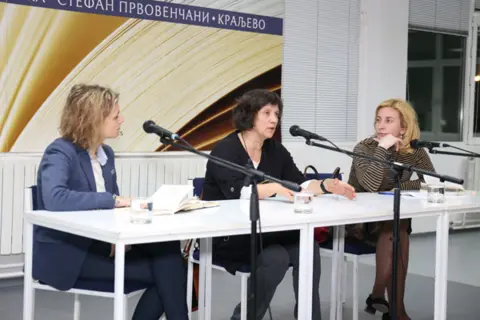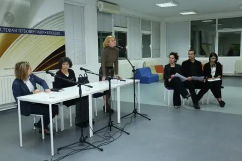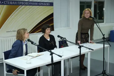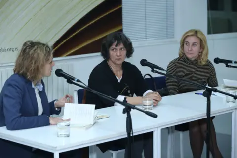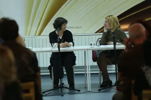Glumci Svetlana Milenković, Zoran Cerovina i Gorica Dinulović otvorili su program čitanjem odlomaka iz romana, a u nastavku večeri, o „Arzamasu“, Ninovoj nagradi i pitanjima književnog i uopšte umetničkog stvaralaštva u svetu danas, sa Ivanom Dimić razgovarale su Tamara Krstić, novinarka Radio Beograda i članica Ninovog žirija, i Ana Gvozdenović.