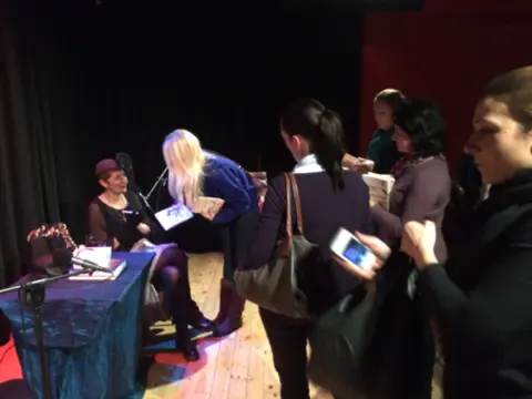 Publika je razgovarala sa Isidorom i postavljala pitanja, većinom o raku, a Isidora je zatim potpisivala svoju novu knjigu.
