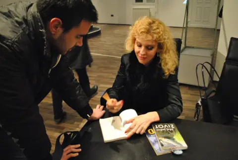 Autorka je istakla da je svoje romane pisala očima, srcem i dušom pa je i ovog puta svoju emociju kroz razgovor prenela na prisutne, a zadovoljstvo se videlo dok je poštovaocima potpisivala primerke knjiga.