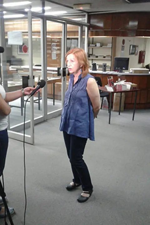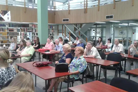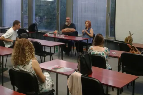 Sa autorkom je razgovarao Vule Žurić, a prijatna atmosfera je podstakla publiku da aktivno učestvuje u razgovoru.