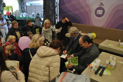 Minja Subota, poznati televizijski autor i voditelj, prisećao se svojih ranijih iskustava sa Ljubivojem Ršumovićem i na sebi svojstven način koji mališani obožavaju vodio promociju i zabavljao sve prisutne.