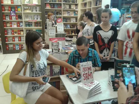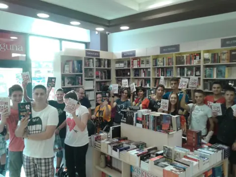 Veliki broj posetilaca se već oko 17 sati okupio u knjižari. Svi su sa nestrpljenjem čekali Marčela i uz vrisak i aplauz dočekali ovog popularnog pisca. Marčelo je kao i obično napravio sjajnu atmosferu, potpisivao knjige i puna tri sata se družio sa svojim obožavaocima.