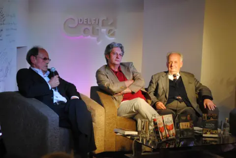 Na tribini u Delfi Caféu u SKC-u našli su se na okupu književnik Ivan Ivanji, autor knjige „Titov prevodilac“, Pero Simić, pisac publicističkog dela „Broz protiv Tita“, i novinar, urednik i publicista Milomir Marić, koji je pre tri decenije napisao kultni bestseler „Deca komunizma“, a Laguna ga ponovo štampala za nove generacije čitalaca.
