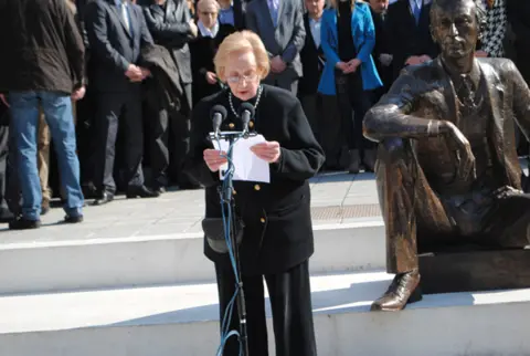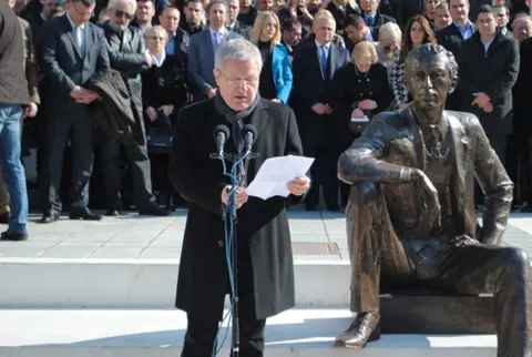 „Pekić nam je ostavio proganjajući osećaj duga prema sopstvenoj zemlji, i nevažno je ko mu podiže spomenik, već da mu pokažemo šta smo i koliko smo od njega naučili“, rekao je premijer Srbije i zahvalio Ljiljani Pekić na hrabrosti i istrajnosti, istakavši da je lično ponosan što prisustvuje otkrivanju spomenika, kao i da je to za njega velika čast.