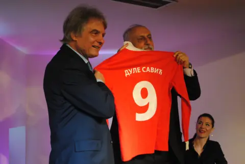 Autor je na kraju promocije Duletu Saviću poklonio repliku dresa koji je naša reprezentacija nosila na Svetskom prvenstvu u Urugvaju.