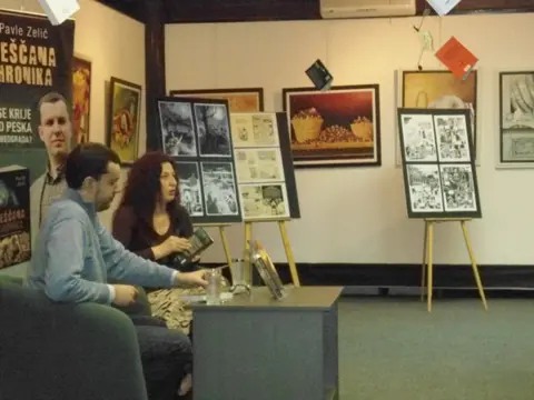 Naime, pored obimne priče o aktuelnom romanu „Peščana hronika“, inspiraciji i pozadini nastanka ovog dela, Zelić je sa spisateljicom Tatjanom Janković govorio i o svojim kratkim pričama i strip serijalu „Družina Dardaneli“ koji stvara sa crtačem Draganom Paunovićem.