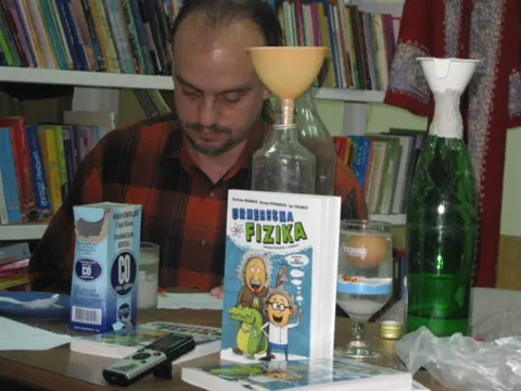„Urnebesna fizika“ je knjiga koja oslobađa decu od bauka nauke i istovremeno ih uvodi u ozbiljna saznanja putem raznih „trikova“. Ova knjiga je najpre zbirka eksperimenata iz fizike koju je napisao dugogodišnji profesor i naučnik Svetislav Paunović. Rukopis su potom preuzela dva izvanredna pisca za decu, Branko Stevanović i Igor Kolarov, i preuredili ga tako da bude neodoljivo zabavan čitaocima svih uzrasta. Ilustracije Ane Petrović predstavljaju dodatni sloj humora koji je, uz veseli dizajn knjige, opravdao atribut „urnebesna“ u naslovu.