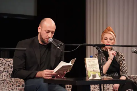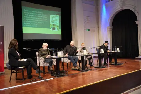 Pisac je pročitao dve priče iz svoje zbirke – „Ako imaš nekog koga nemaš“ koja otvara knjigu „Pun kofer priča“ i „Handke“, posvećena austrijskom nobelovcu Peteru Handkeu, zapravo preneto lično iskustvo pri upoznavanju sa slavnim piscem na Mećavniku kod Emira Kusturice.