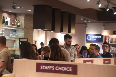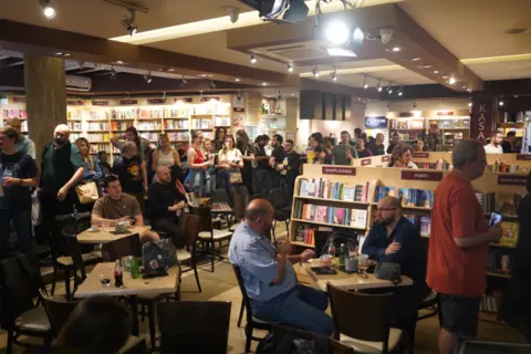 Potpisivanje je počelo nekoliko minuta pre 17 sati i vrlo brzo je knjižara postala mala za sve koji su želeli potpis na svom primerku. Strpljivo i posvećeno, Stiven Erikson je skoro dva sata potpisivao knjige svakom, a većina je donosila nekoliko naslova, pojedini i sve knjige.