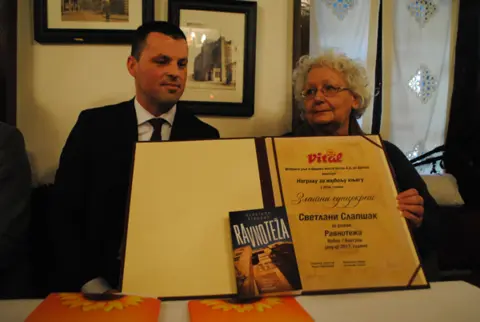 Svetlana Slapšak je zahvalila žiriju na nagradi i dubokom razumevanju njenog dela. „Ako ima bilo kakve zasluge u tome što sam radila, to je da sam se okrenula temi koja je neprivlačna, cenzurisana i koja spada u onaj ’betonirani’ deo sećanja kojeg većina neće da ima, a tiče se rata, uloge žene u ratu, zaboravljanju onog što su žene učinile, a tiče se spasavanja ljudi i spasavanju naše svesti. Jedan moj prijatelj je rekao da su žene spasle čast Srbije u ratu i ja sam to htela da kažem romanom i da zaronim u svakodnevicu koja mi je tada bila veoma bliska i koju sam odlično poznavala i da tu uključim što više uspomena na žene koje su za mene bile važne.“