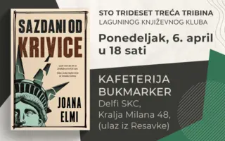 Novo okupljanje Laguninog književnog kluba i 133. tribina održaće se u ponedeljak 6. aprila od 18 sati u kafeteriji Bukmarker u knjižari Delfi SKC. Tema razgovora biće roman „Sazdani od krivice “ bugarske književnice Joane Elmi.