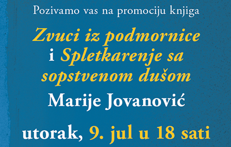 U utorak 9. jula u knjižari Delfi SKC od 18 sati održaće se književno veče sa Marijom Jovanović na kojem će biti predstavljene njene knjige u izdanju Lagune, „Spletkarenje sa sopstvenom dušom“ i „Zvuci iz podmornice“.