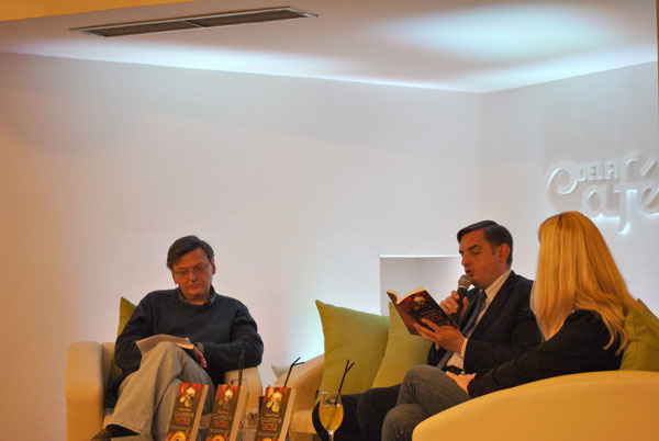 Kafe popularne knjižare „Delfi“ u SKC-u bio je u četvrtak uveče prepun znatiželjnika koji su došli da iz prve ruke – od autora i urednika – saznaju šta se krije između korica 10. romana Miomira Petrovića „Galerijeve vatre“ u izdanju „Lagune“.